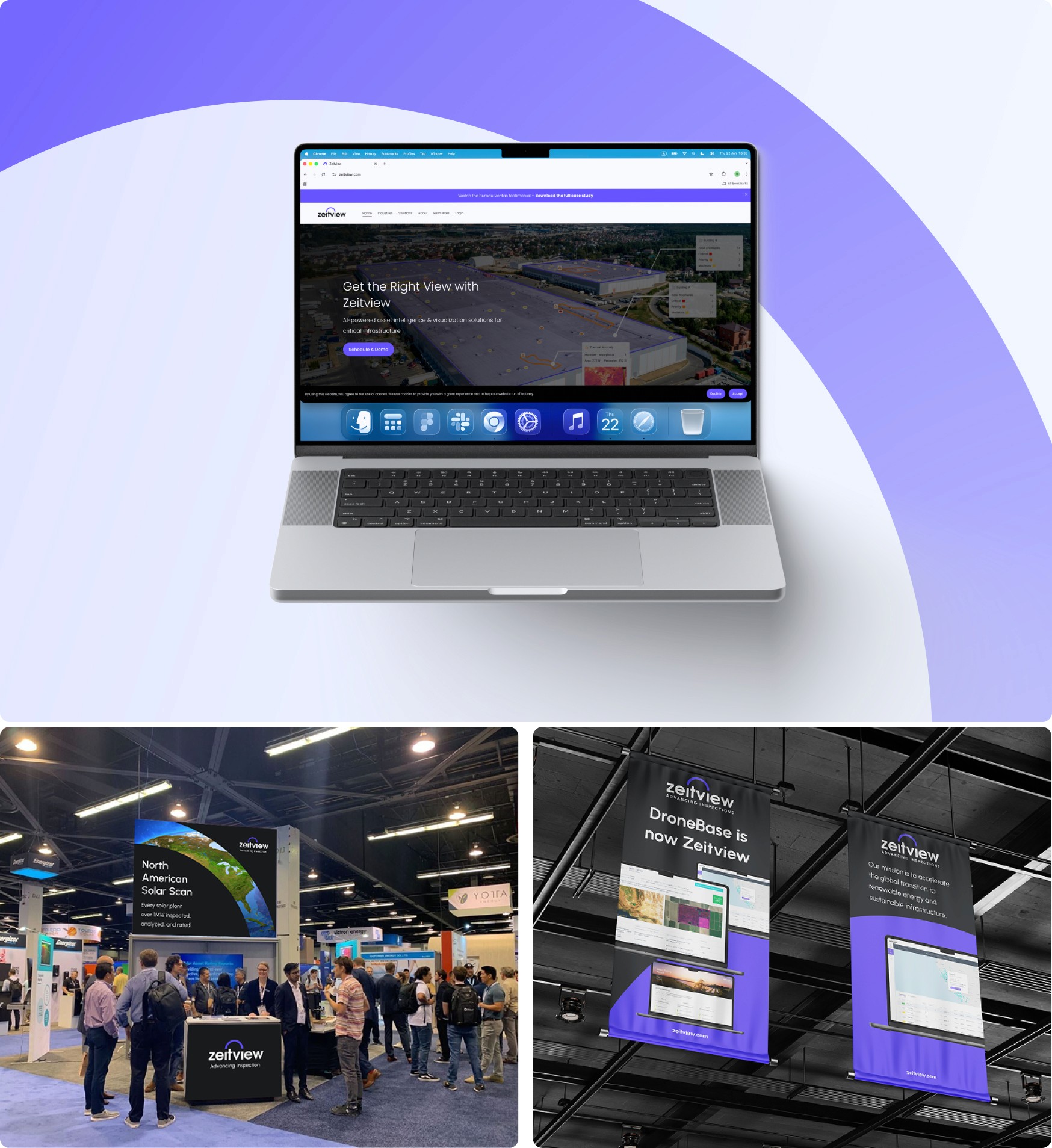 We redesigned Zeitview’s brand and digital presence end to end. Our work covered a new logo and identity system, a refreshed color palette and typography, a custom illustration language, and a complete set of presentation templates. We also redesigned the website and produced launch-ready marketing assets plus materials for talks, demos, and events — so the brand looks consistent across every touchpoint.